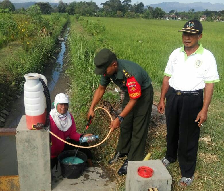 Penyemprotan hama yang dilakukan Babinsa dan petani, bertujuan agar tanaman padi terhindar dari hama dan penyakit yang dapat merusak tanaman, sehingga produksi padi yang dihasilkan akan meningkat. (Kodim Klaten IT)