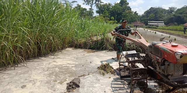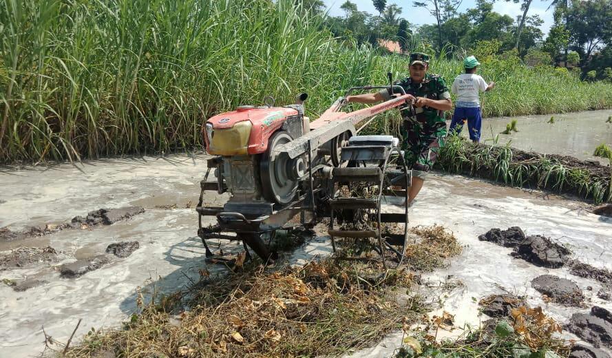 Sertu Safari Babinsa Koramil 12 Manisrenggo mengatakan, guna mendukung program ketahanan pangan nasional pada percepatan masa tanam kedua, dirinya membantu warga membajak sawah menggunakan traktor untuk musim tanam 2019.