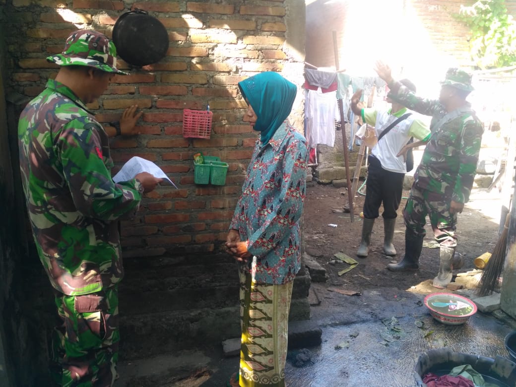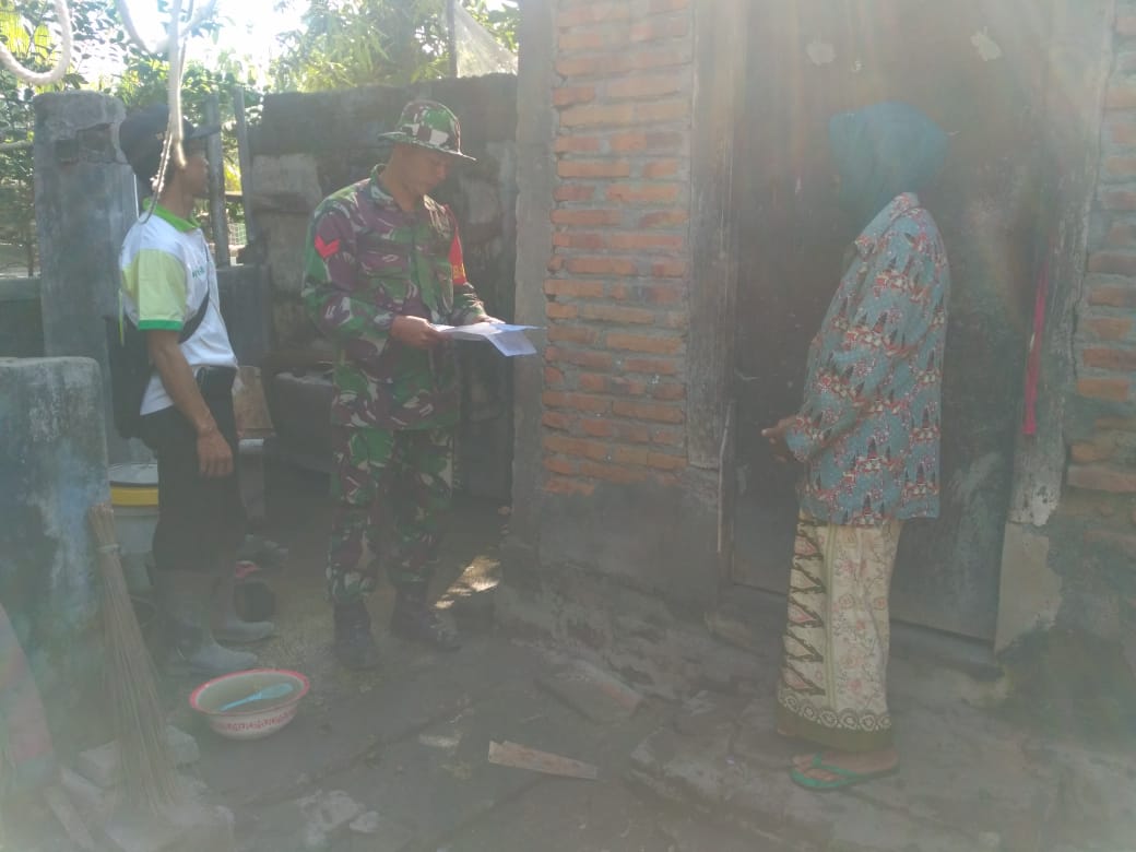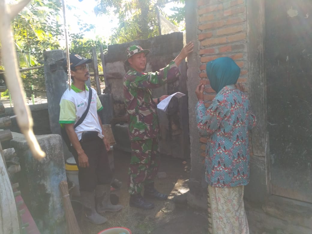 Suswandono Kepala Seksi (Kasi) Pemerintahan Desa Jimbung bersama Koptu Hartono Babinsa Koramil 01 Kota Kodim 0723/Klaten melakukan survey kerumah Warsini salah warga yang mendapat bantuan RTLH.