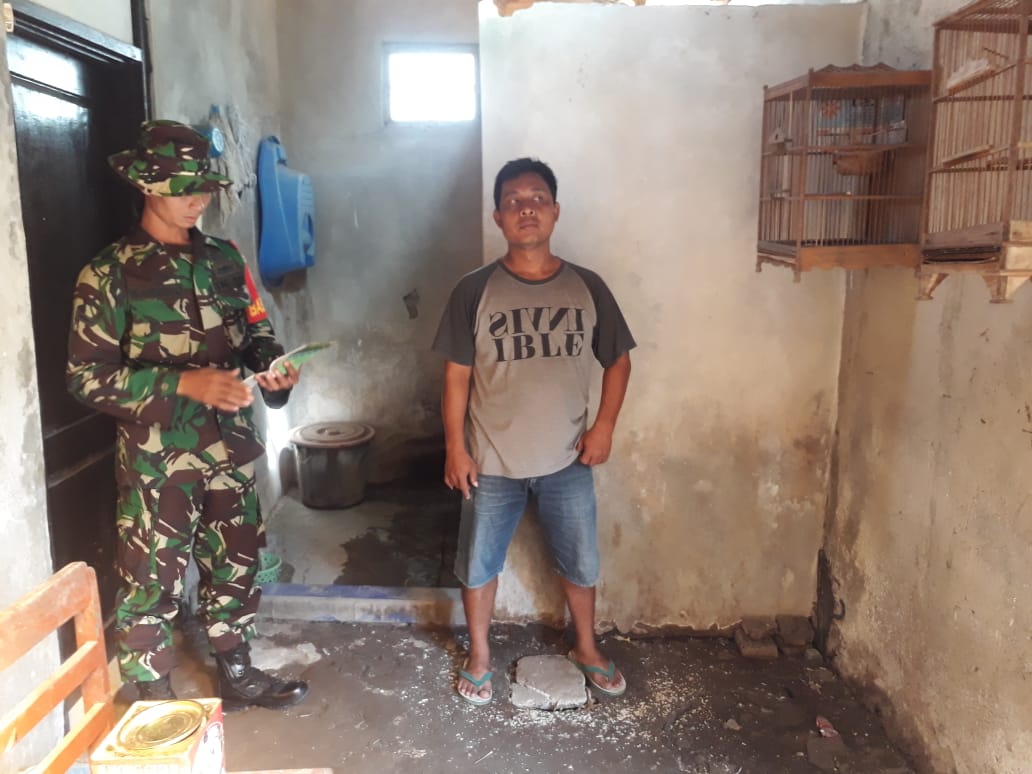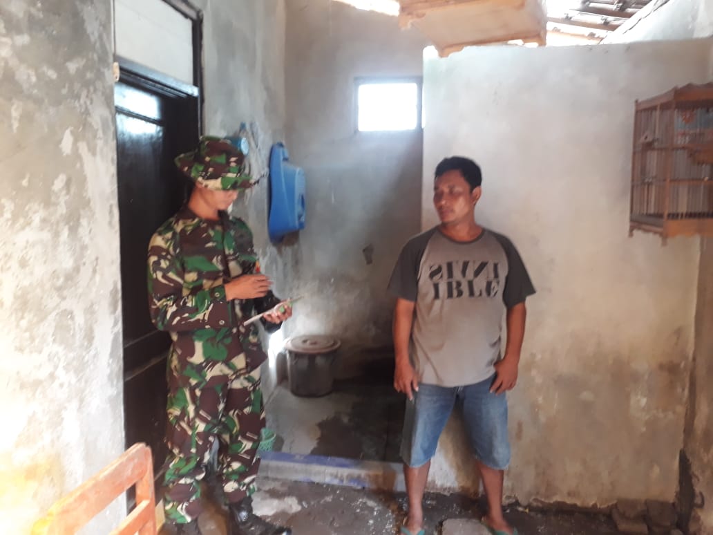 Marwanto warga RT 01 RW 18 Dukuh Jimbung Kulon Desa Jimbung Kecamatan Kali Kotes Kabupaten Klaten kedatangan TNI dari Koramil 01 Kota Kodim 0723/Klaten untuk melakukan pengecekan rumahnya terkait dengan pembuatan Jamban, Rabu (26/06/19)