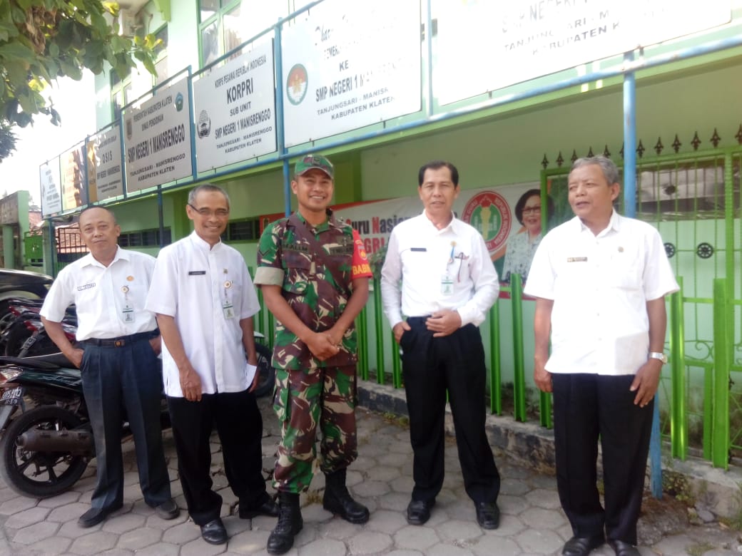 Kedatangan babinsa diterima oleh Kepala Sekolah Giyarso Kepala SMP Negeri 1 Manisrenggo , dan menyampaikan bahwa dalam kegiatan belajar mengajar, pihak sekolah sudah memiliki alat peralatan peraga yang sudah memiliki standart dari dinas pendidikan dan kebudayaan .