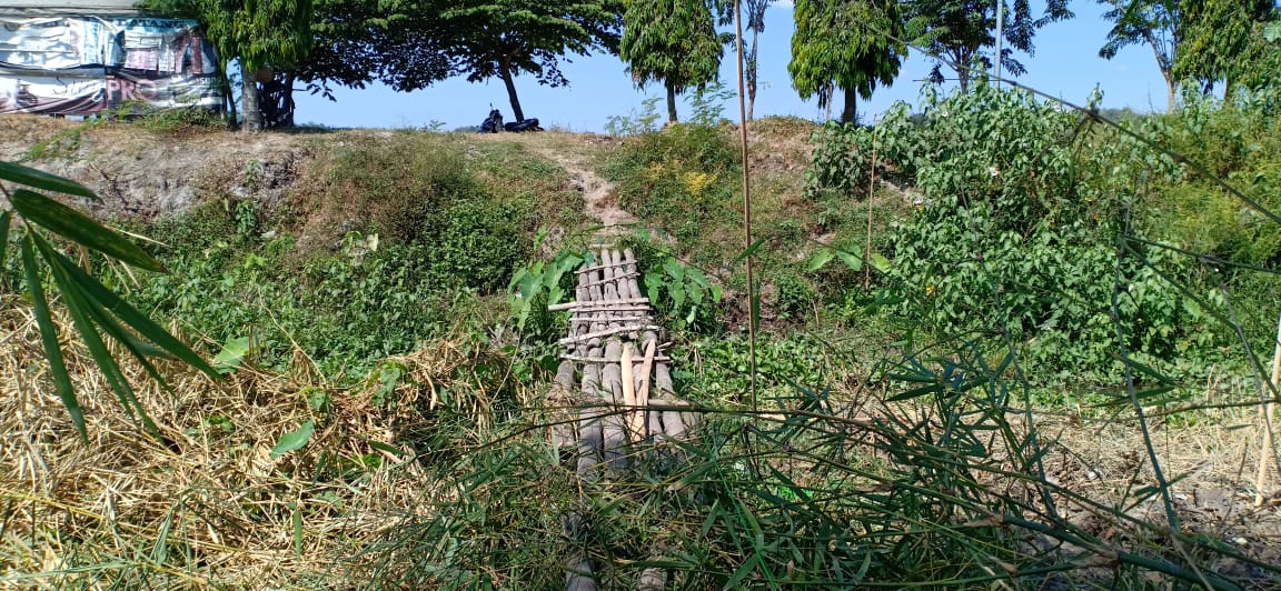 “ saya sangat prihatin dengan kondisi jembatan yang masih terbuat dari bambu, tentunya petani ataupun warga yang akan lewat sangat berbahaya,” ungkap Dandim.