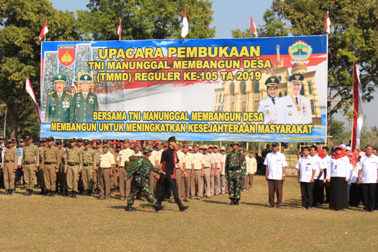Ganjar Pranowo dalam sambutannya di hadapan ribuan peserta upacara mulai dari TNI, Polri, Forkompimda Kabupaten Klaten, Tokoh Masyarakat, Tokoh Pemuda dan Mahasiswa serta pelajar mengatakan, TMMD Reguler105 Tahun 2019 ini resmi dibuka.