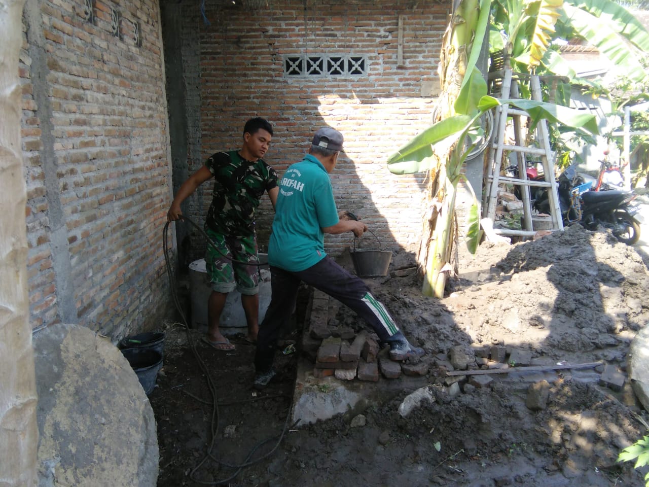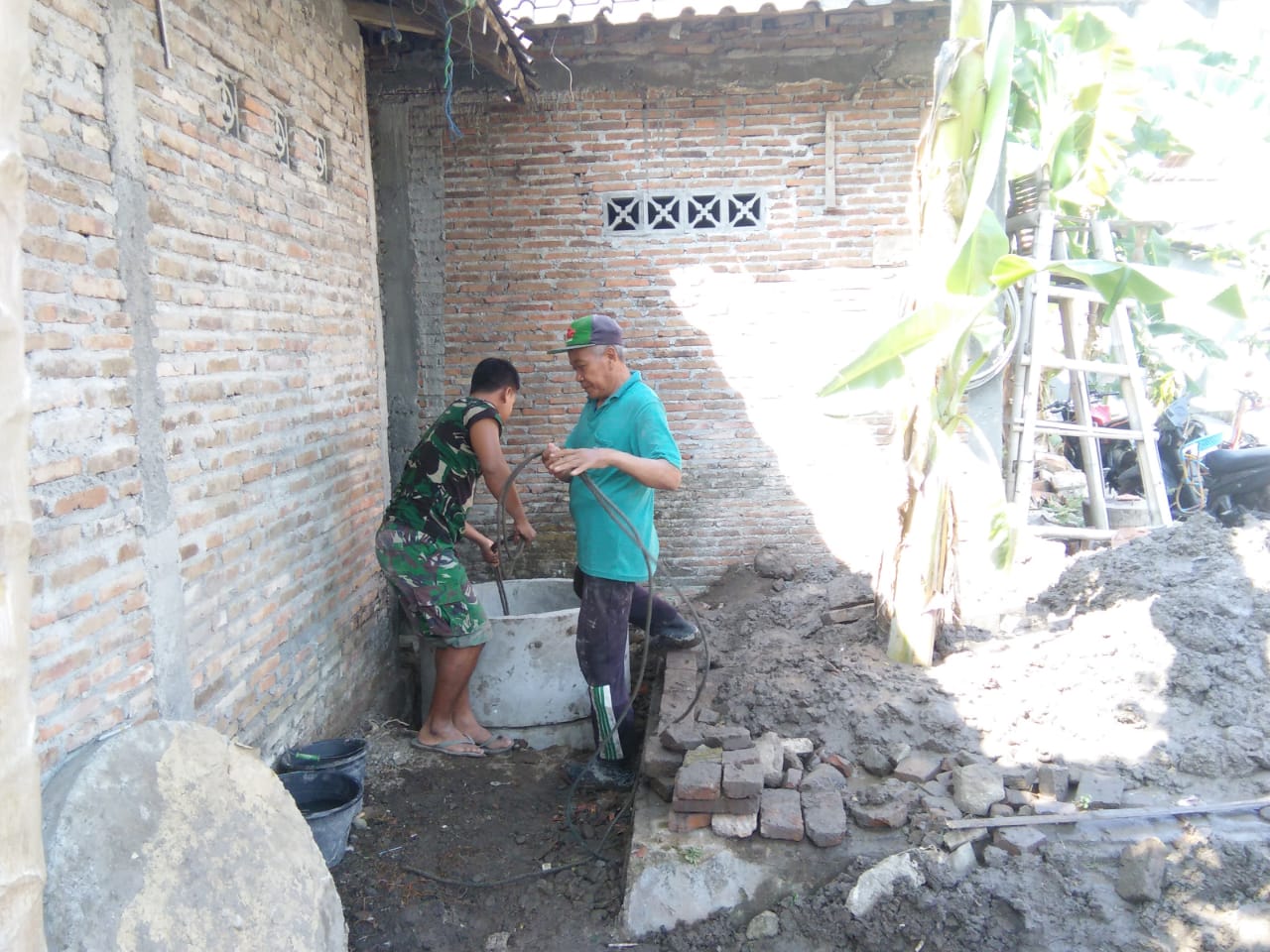 Satgas TNI Manunggal Membangun Desa (TMMD) Reguler 105 Kodim 0723/Klaten, salah satunya jambanisasi untuk Harto warga Dukuh Krambil Gede RT 01/18 Desa Jimbung kecamatan Kalikotes Kabupaten Klaten, Selasa (30/07/19).