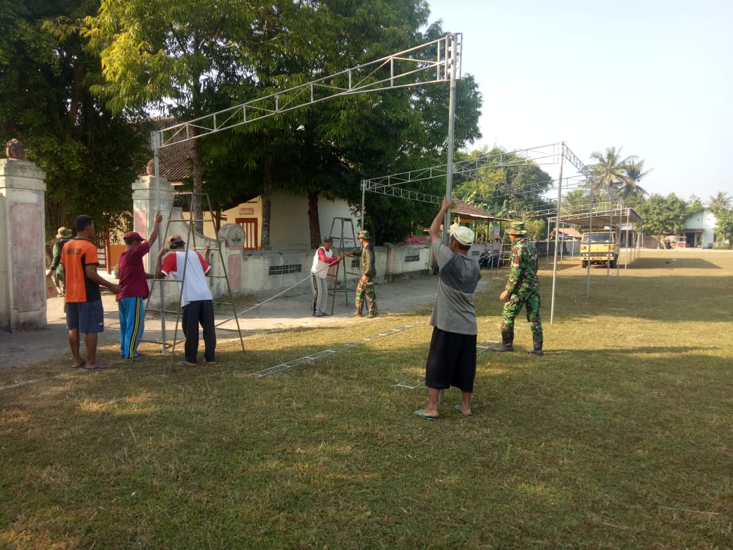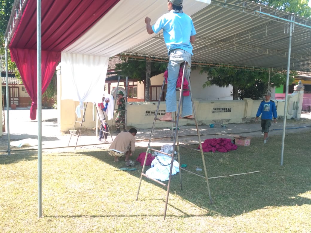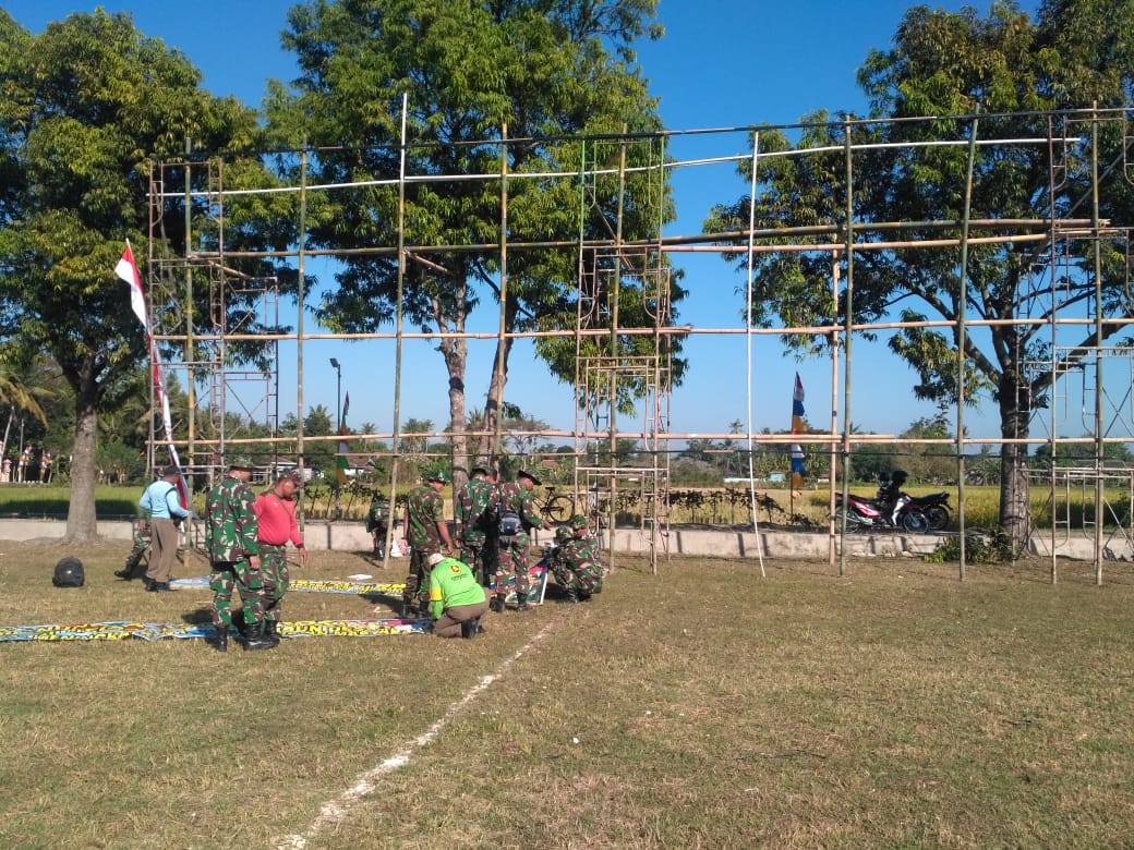 Lapangan Tri Murti Marangan Desa Jimbung Kec Kalikotes Kab Klaten mulai dipersiapkan untuk upacara pembukaan TMMD Reguler 105 Tahun 2019 oleh Kodim 0723/Klaten bersama seluruh komponen Masyarakat.