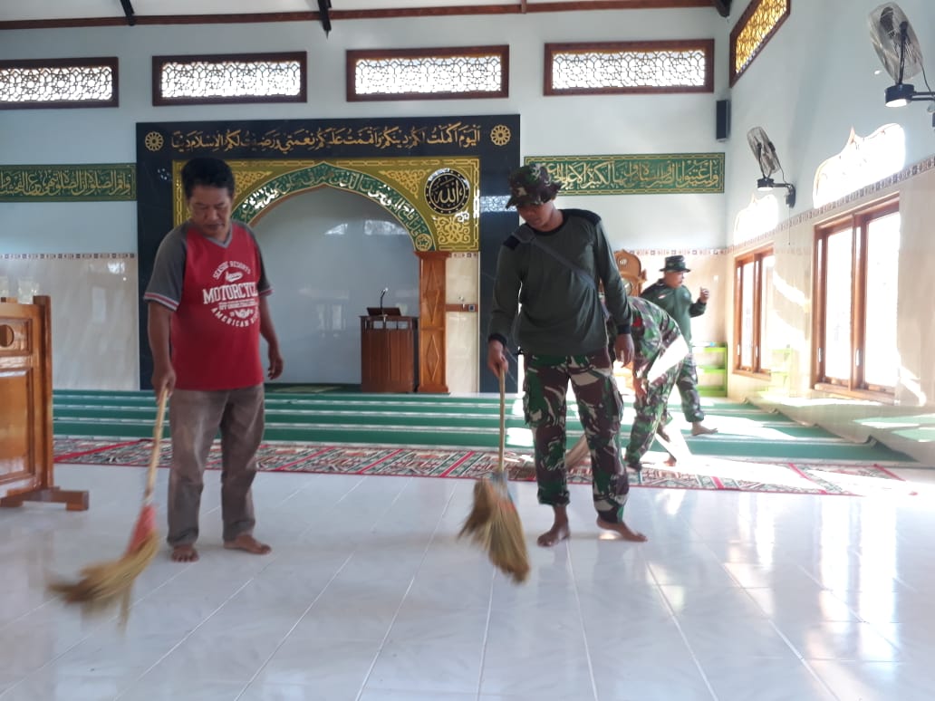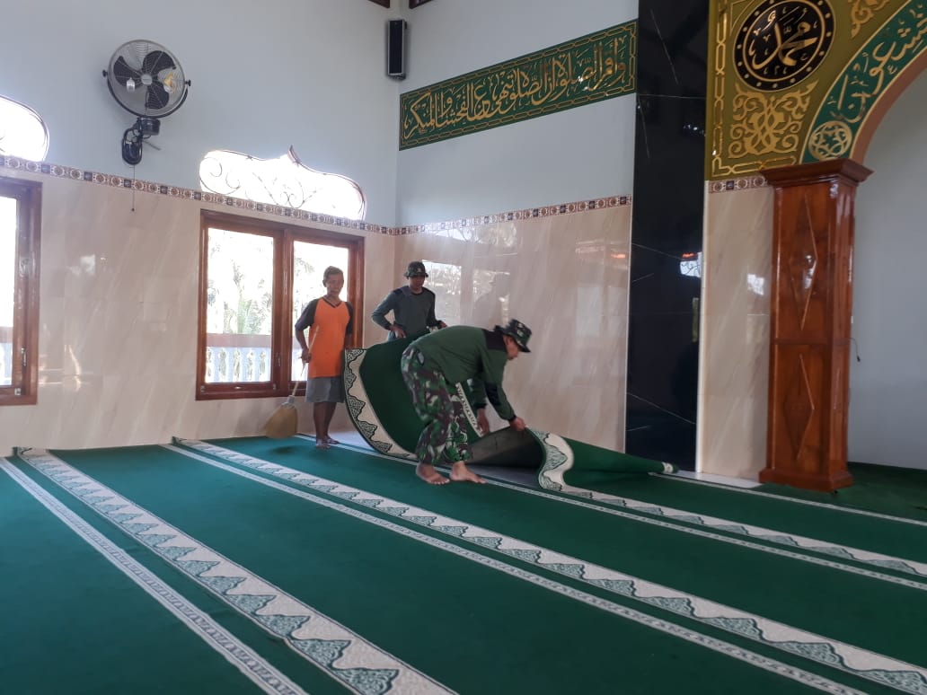 Satuan Tugas (Satgas) TNI Manunggal Membangun Desa (TMMD) Reguler 105 Tahun 2019 Kodim 0723 Klaten melaksanakan pembersihan masjid untuk mempersiapkan Sholat Jumat di Masjid Jami’atul  Khoirot Di Dukuh Jimbung Guo Desa Jimbung Kecamatan Kalikotes Kabupaten Klaten, Jumat (06/07/19).