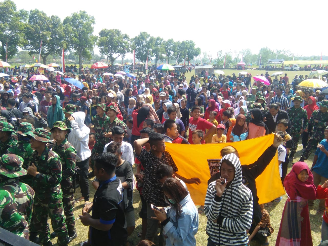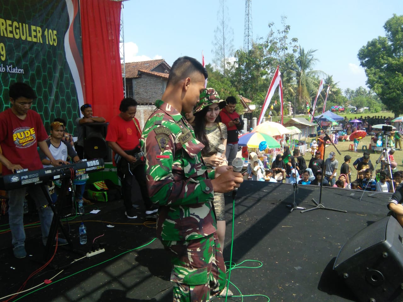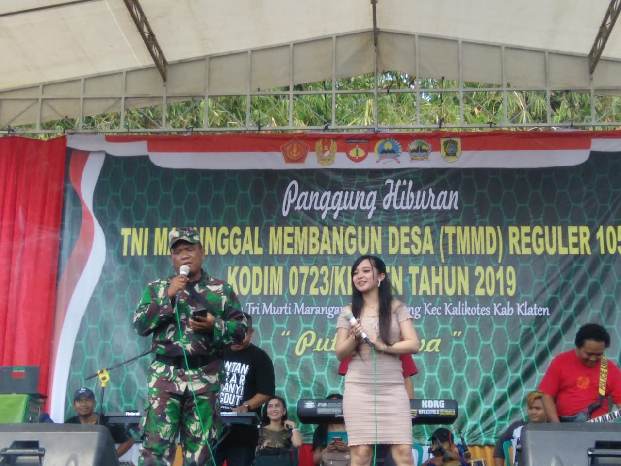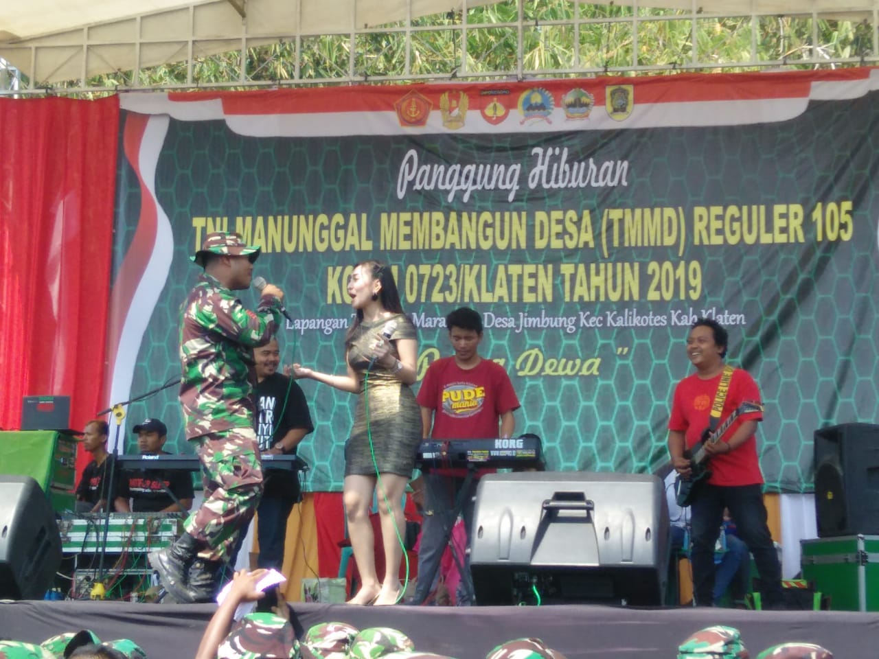 Usai dibukanya TMMD Reguler 105 Tahun 2019 warga bersama Satgas TMMD dihibur oleh OM Putra Dewa pimpinan Andi Kondek dari Kunden Pedan Kabupaten Klaten dengan 3 penyanyi handalnya di Lapangan Trimurti Marangan Jimbung Klaten, Kamis (11/07/19).