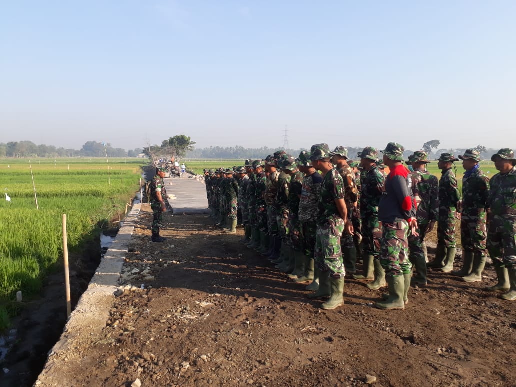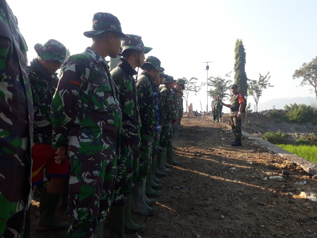 Sebelum terjun kelapangan, Prajurit yang tergabung dalam Satgas TMMD Reguler ke 105 Kodim Klaten melaksanakan apel pagi, seperti yang terlihat pada pagi ini, Senin (15/07/2019).