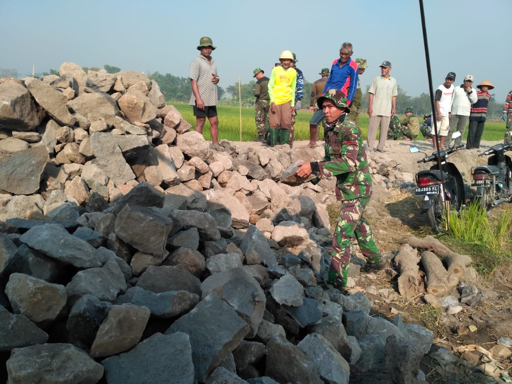 Kodim Klaten – TMMD Reg 105 Kodim Klaten | Prajurit Ini Biasanya Pegang Senjata, Kini Pecahkan Batu Demi TMMD Reg 105