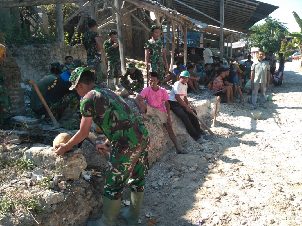 Satgas TMMD Reg 105 Hilangkan Lelah Dan Dahaga dengan Bercanda Bersama Warga