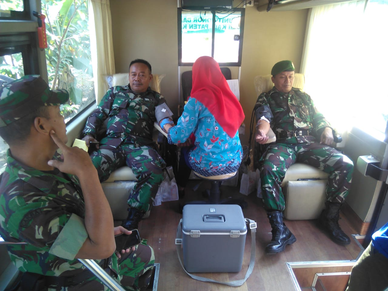 Satgas TMMD Reg 105 Kodim 0723/Klaten menggelar donor darah di Kantor Desa Jimbung Kecamatan Kalikotes Kabupaten Klaten tempat dimana kegiatan TMMD Regu ke 105 dipusatkan. Bertempat di Poskotis, donor darah ini dilaksanakan olehpara prajurit yang tergabung dalam Satgas TMMD Reguler ke 105, Persit Kartika Chandra Kirana Cab XLIV, PNS Kodim dan warga masyarakat, Kamis (11/07/19)