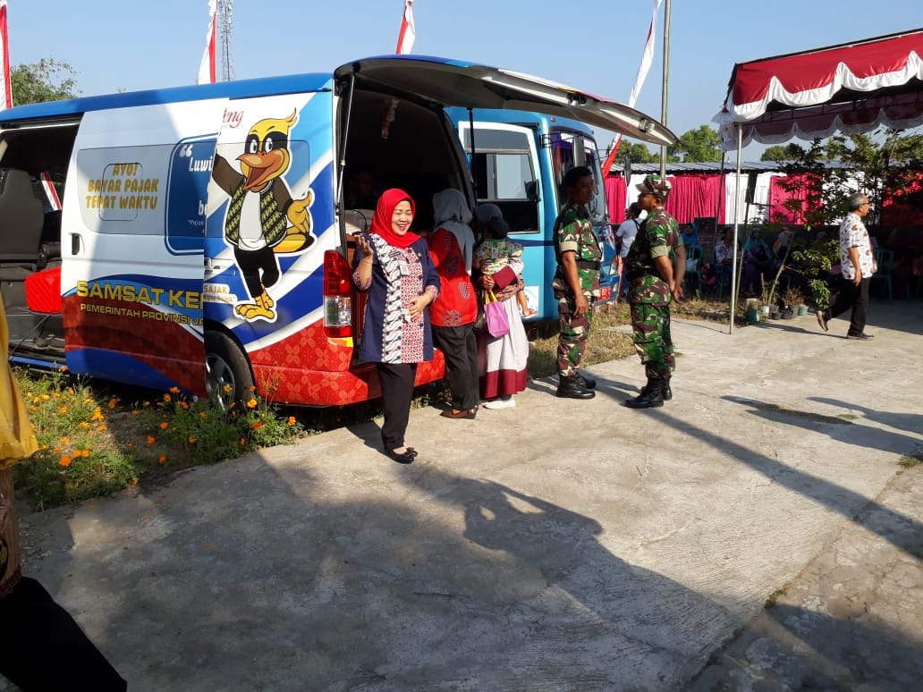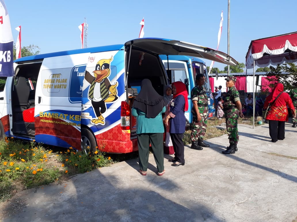 Hari pertama pelaksanaan TNI Manunggal Membangun Desa (TMMD) Ke-105 Tahun Anggaran (TA) 2019, Kodim 0723 Klaten, digelar berbagai kegiatan baik fisik maupun non fisik. Salah satu kegiatan non fisik adalah adanya Layanan Samsat Keliling yang berada di Lokasi TMMD Ke-105, yang berada di Desa Jimbung Kecamatan Kalikotes Kabupaten Klaten, Kamis (11/07/19).