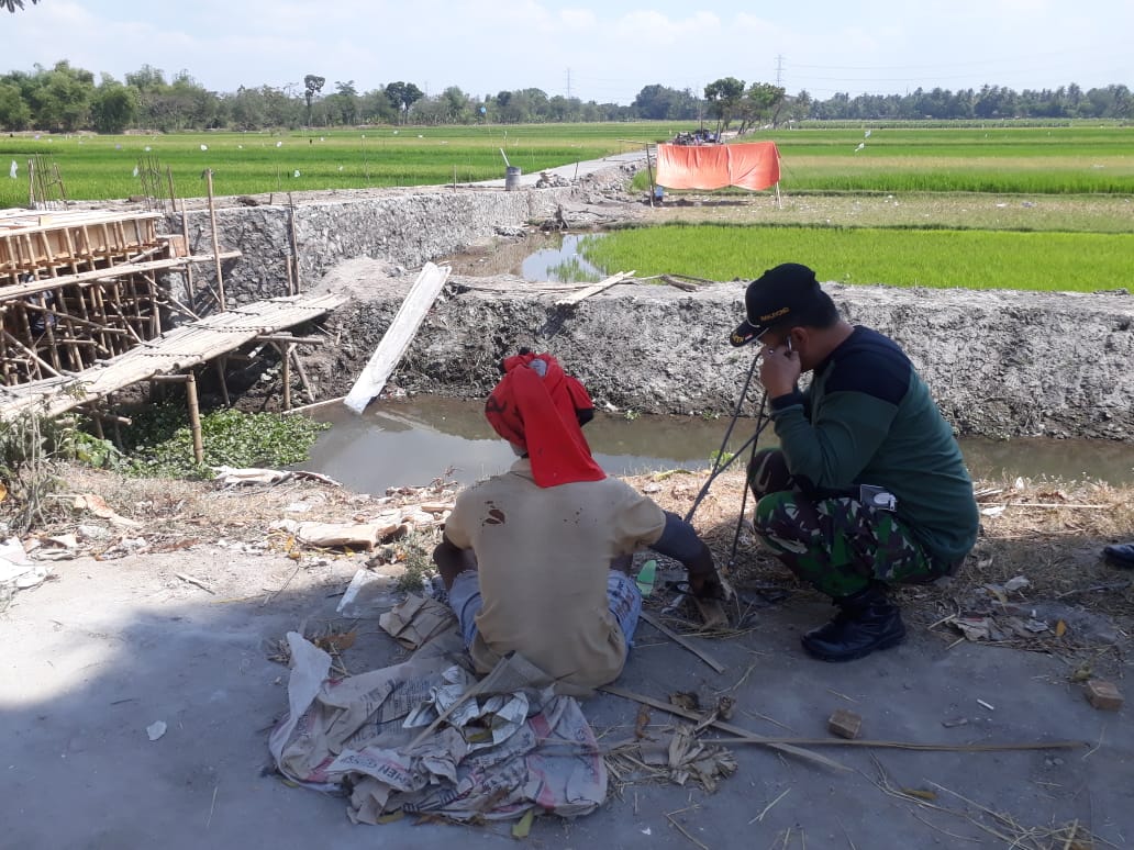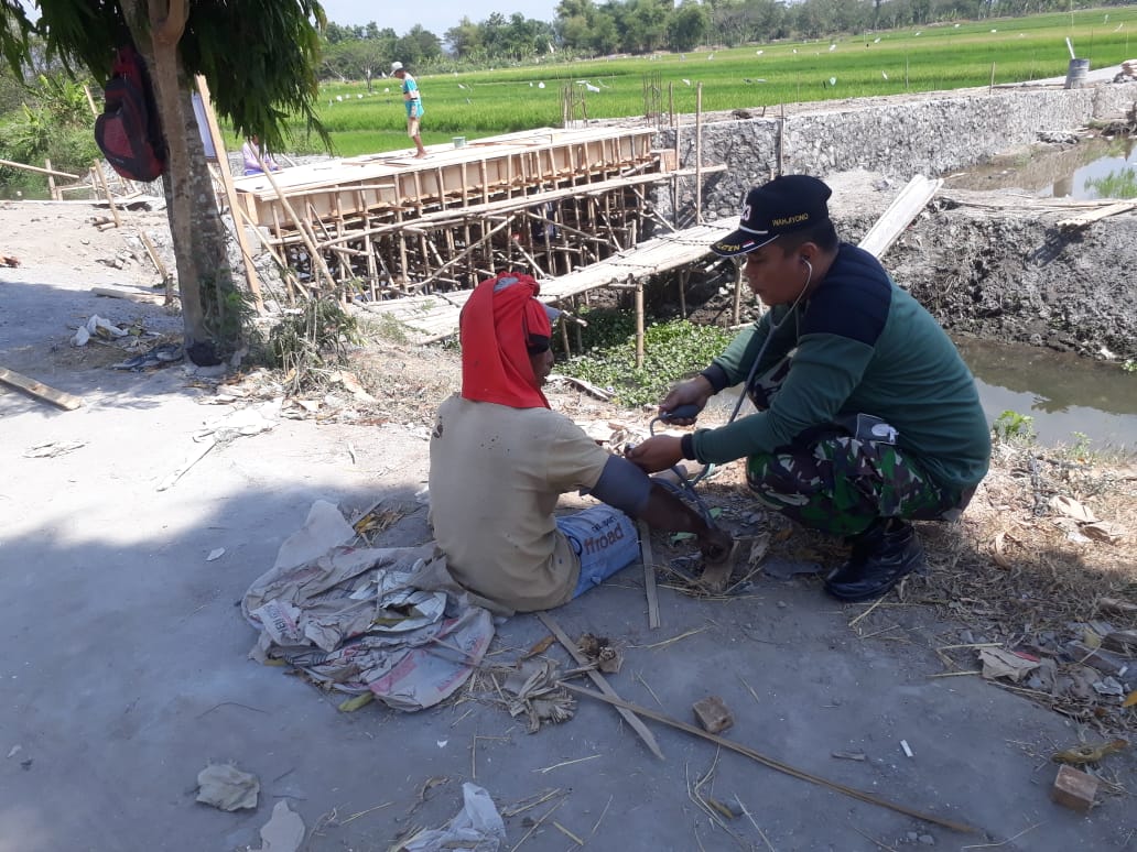Sepeti yang dilakukan oleh Serda Wahjiono, Anggota yang tergabung di dalam TMMD Reguler ke-105 Kodim Klaten sedang melaksanakan pengecekan kesehatan kepada Dadang (60 tahun), salah satu warga Jimbung yang sedang bergotong royong dalam pembuatan jembatan.