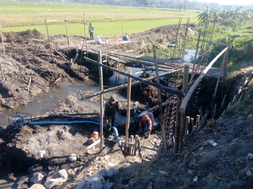 Dimulainya Pra TMMD Reguler 105 Kodim Klaten pada 20 Juni 2019 telah membuahkan hasil yang cukup banyak, mulai dari penyiapan lokasi pembuatan talut, betonisasi jalan bahkan kini telah sampai pada pemasangan besi cakar ayam sebagai kekuatan pokok jembatan, Minggu (07/07/19).