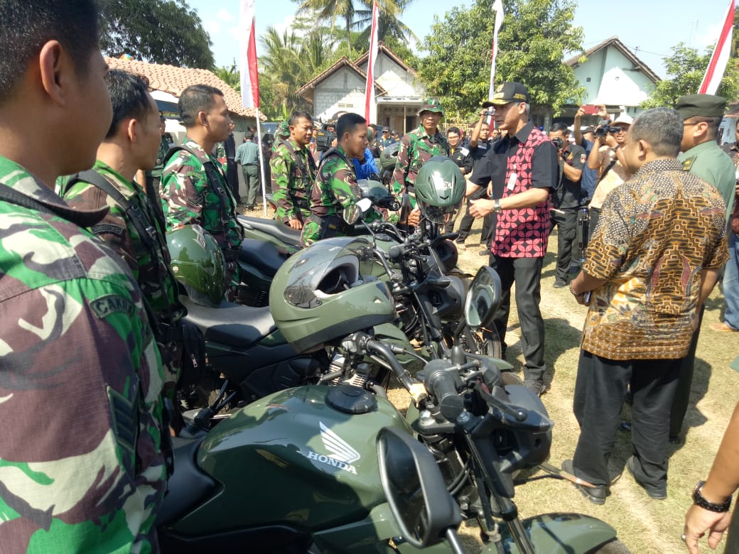 Sebeleum menuju lokasi sasaran TMMD , Ganjar menyempatkan diri untuk bersalaman dan menyapa Prajurit Satgas TMMD Reguler, dengan senyumnya yang khas, dan memberikan semangat kepada Satgas agar bekerja maksimal dalam TMMD.