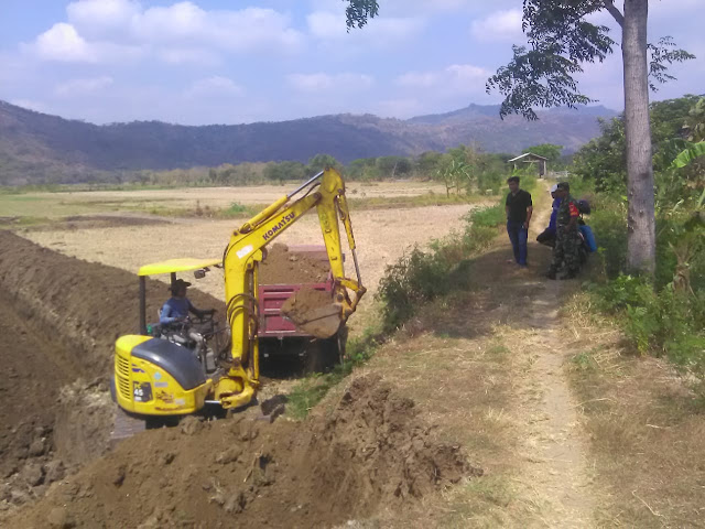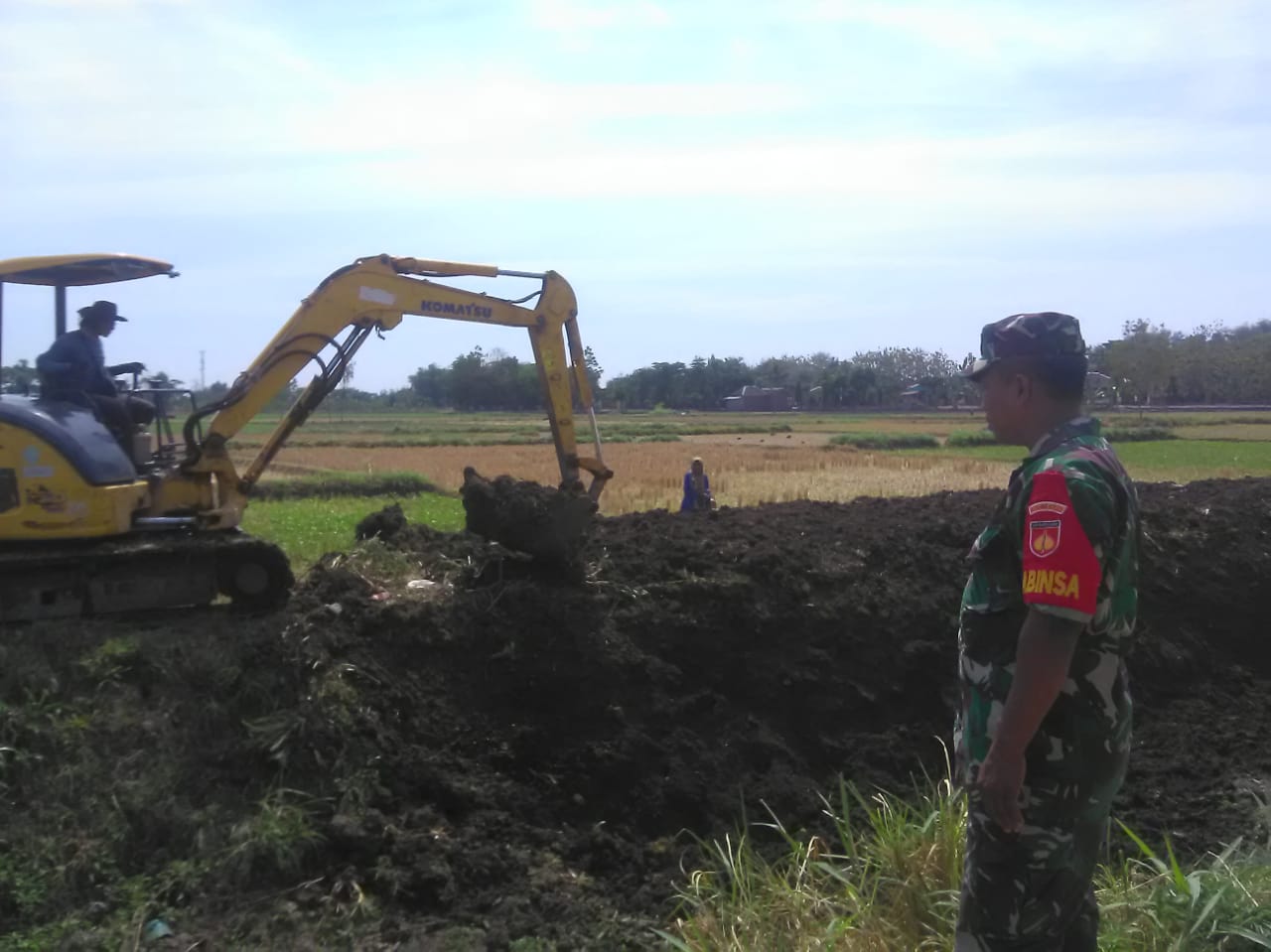 Babinsa Koramil 20 Cawas Serma Agus Setya Hartana Bersama Kepala Desa Burikan dan Perangkat Desa Memantau Normalisasi Irigasi dengan Alat Berat Kodim0723/Klaten.Senin (19/8/2019)