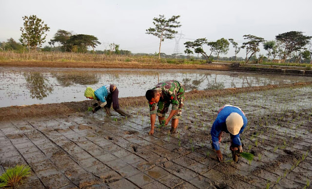 Memupuk kebersamaaan dan tetap menjalin hubungan harmonis dengan masyarakat Babinsa Koramil 23/Ceper Koptu Suparman melaksanakan pendampingan tanam padi dengan sistem Jajar Legowo di sawah milik Supriyadi Dukuh Metukan Rt02/02 Desa Kuncen Kecamatan Ceper Kabupaten Klaten.