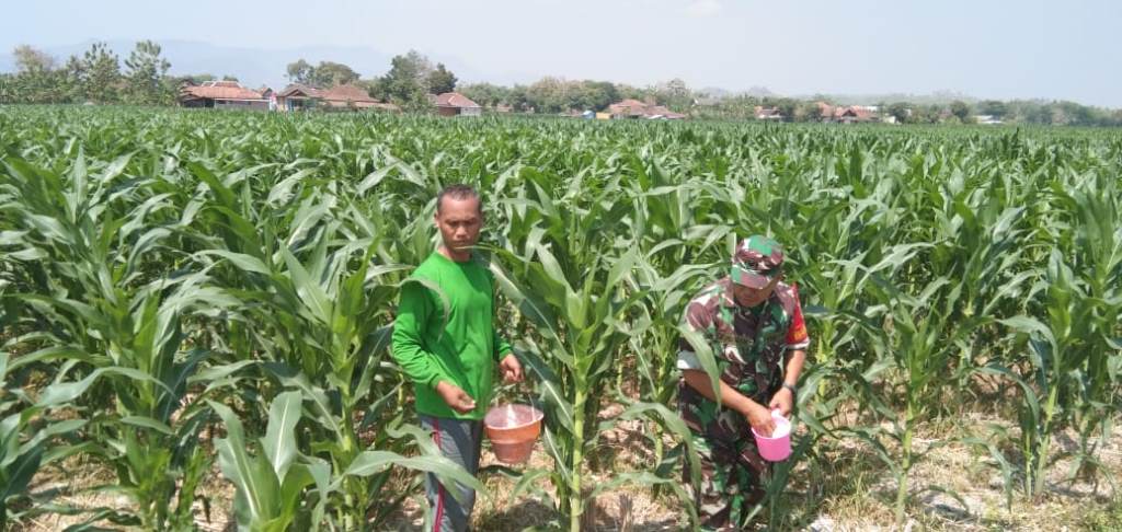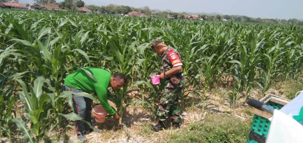 | Babinsa Cawas Dampingi Petani Pupuk Tanaman Jagung |