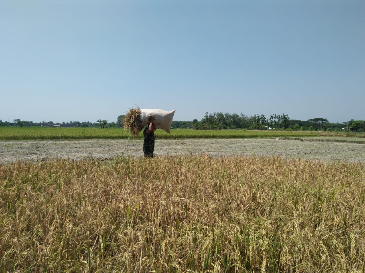 Meskipun musim kemarau yang panjang, para petani pun bisa panen padi, pagi ini Babinsa mendampingi danmembantu petani yang panen padi di wilayah.  Disela mendampingi petani, Babinsapun berkomunikasi dengan petani, para petani mengungkapkan keluhan yang mereka alami diantaranya masalah pengairan di musim kemarau ini.
