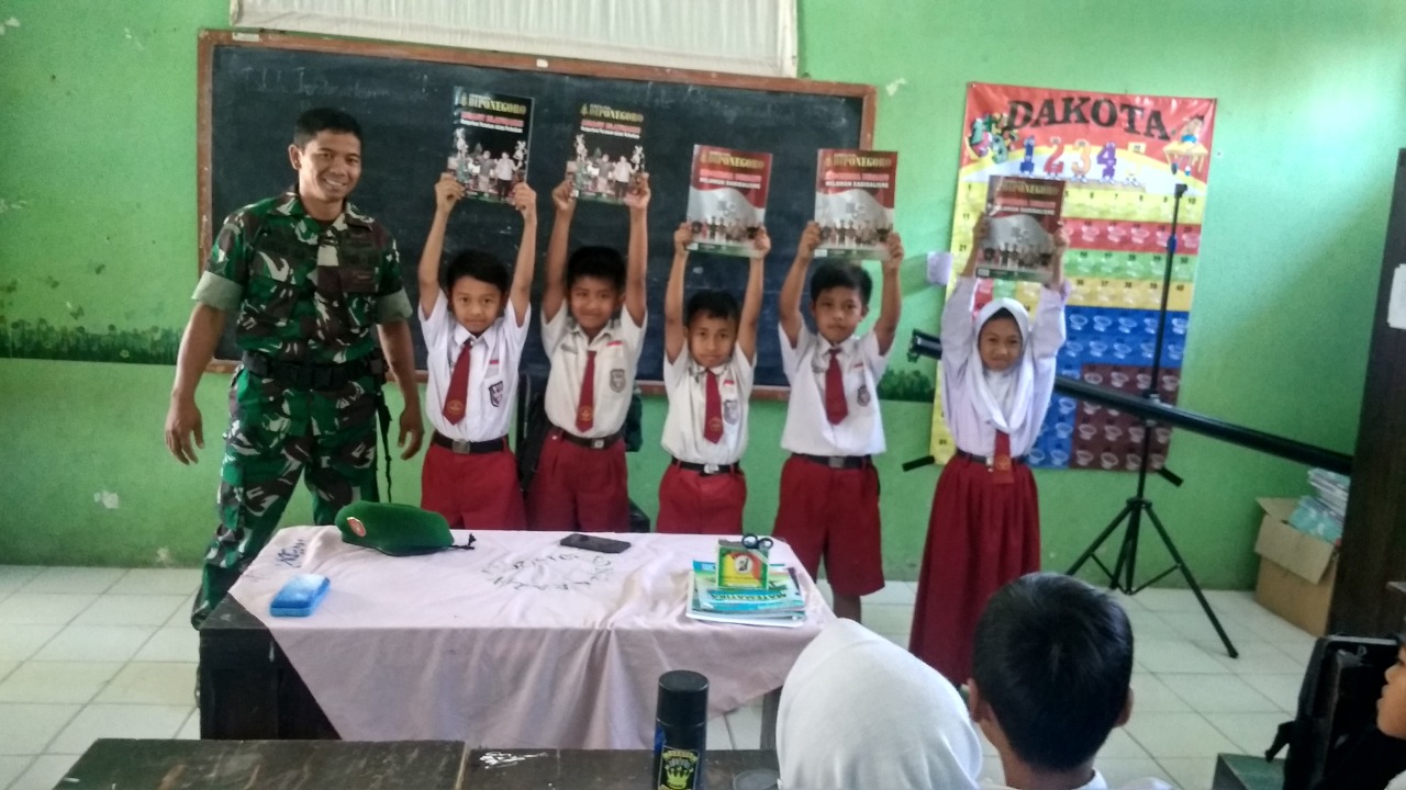 Dalam kesempatan ini Sertu Lukas memberikan materi profesi dan inspirasi dalam meraih cita cita .Hal ini sesuai dengan permintaan dari pihak sekolahan .Sejak dini di kenal dengan profesi yang tentu saja dengan rasa cinta tanah air salah satunya cita cita menjadi TNI.