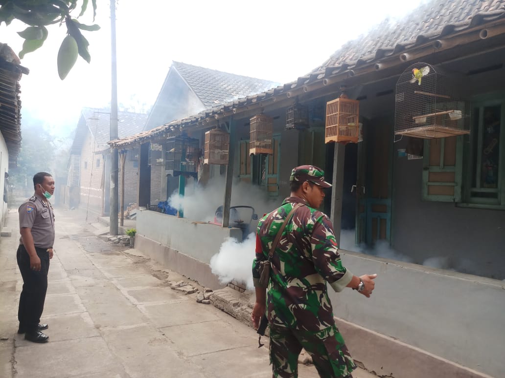 Babinsa Koramil Wonosari Kopda Sifin bersama Babinkamtibnas Brigpol Ari Yunanto melaksanakan kegiatan foging Nyamuk DBD oleh Dinas Kesehatan Klaten di RT 11,12 RW 05 DukuhPandanan, DesaPandanan Kecamatan Wonosari Kabupaten Klaten, Selasa (15/10/19)