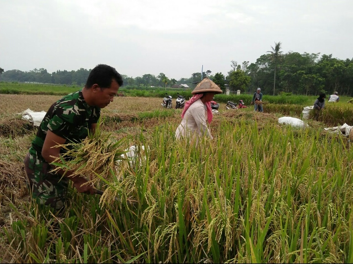 Wujud dukungan TNI khususnya prajurit kewilayahan yaitu Babinsa dalam mendukung ketahanan pangan (Hanpangan), dengan semangat ikut serta terjun langsung kesawah bantu para petani desa binaannya saat memanen padi, inilah yang dilakukan oleh Serka Catur Widodo kepada para petani warga desa binaannya.