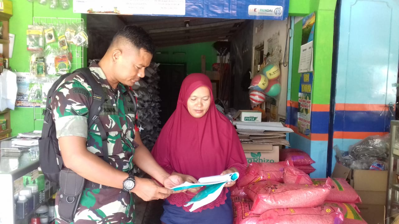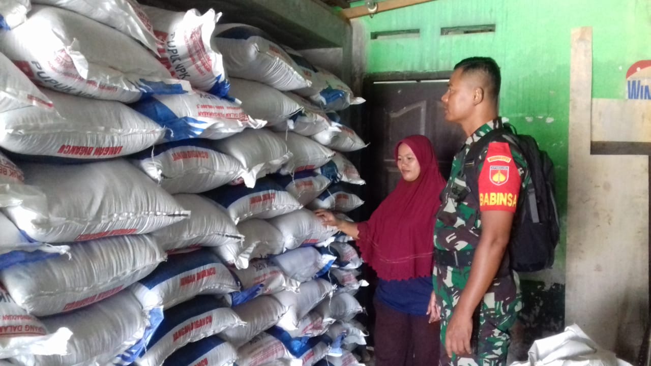 Babinsa Koramil 23/Ceper Serda Suparman mengecek subsidi pupuk di kios/pengecer Jaya Makmur milik Bp Agung Kurnia di dukuh Ngaran Desa Kuncen Kecamatan Ceper Kabupaten Klaten. Jumat ( 08-11-2019 )