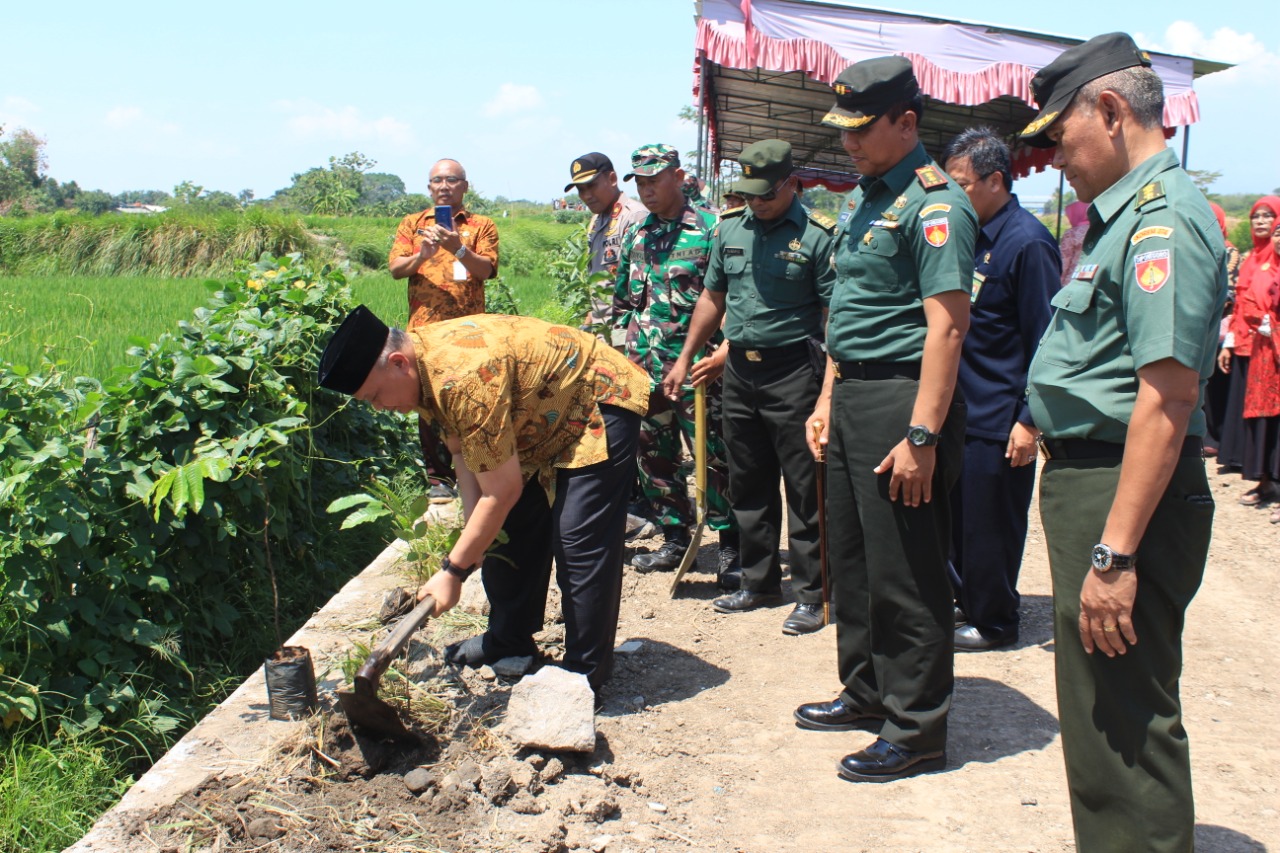 Untuk itu Kodim 0723 Klaten saat pelaksanaan Karya Bhakti Mandiri Klaten Bersinar (KBMKB) di Desa Sidowayah Kec Polanharjo kabupaten Klaten melaksanakan Binter Terpadu dengan menanam ratusan pohon di area betonisasi jalan, Selasa (19/11/19)