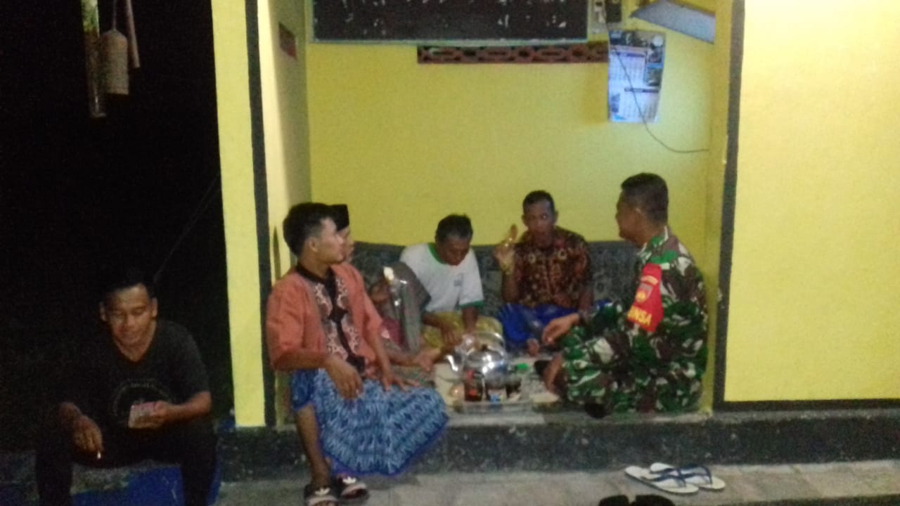 | Babinsa Berkomunikasi sosial bersama warga binaan di pos kamling |