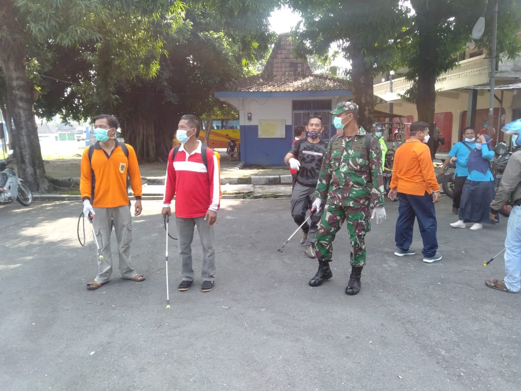 Tiga puluh orang gabungan tiga pilar memprioritaskan fasilitas umum seperti terminal Bus Penggung, Stasiun kereta, serta nantinya akan diteruskan ke beberapa tempat ibadah untuk dilaksankan penyemprotan disinfektan baik di tingkat Kecamatan, Kelurahan sampai dengan dilingkungan RT/RW sehingga kita dapat mencegah penyebaran Virus Covid 19.