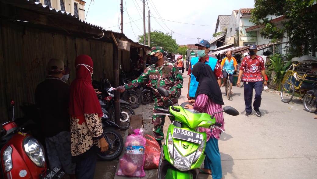Lettu Inf Eka Atmaja Danramil 04/Pedan Kodim 0723/Klaten Bersama Dinsos P3AKB Kabupaten Klaten Melaksanakan Kegiatan Sosialisasi Pencegahan Covid-19 di Wilayah kecamatan Pedan. Selasa, 21/04/2020