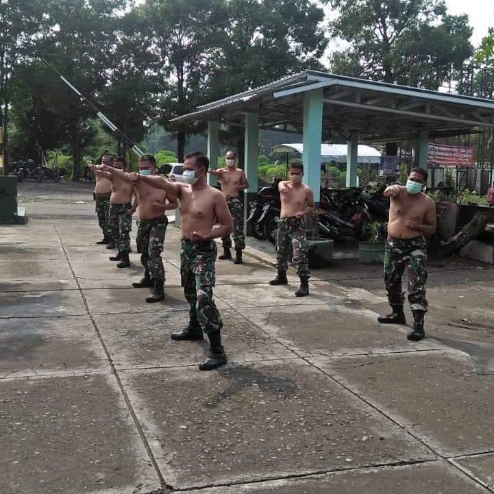 Klaten – Tingkatkan Imun Tubuh Anggota Koramil Manisrenggo lakukan berjemur sambil latihan Bela diri Militer