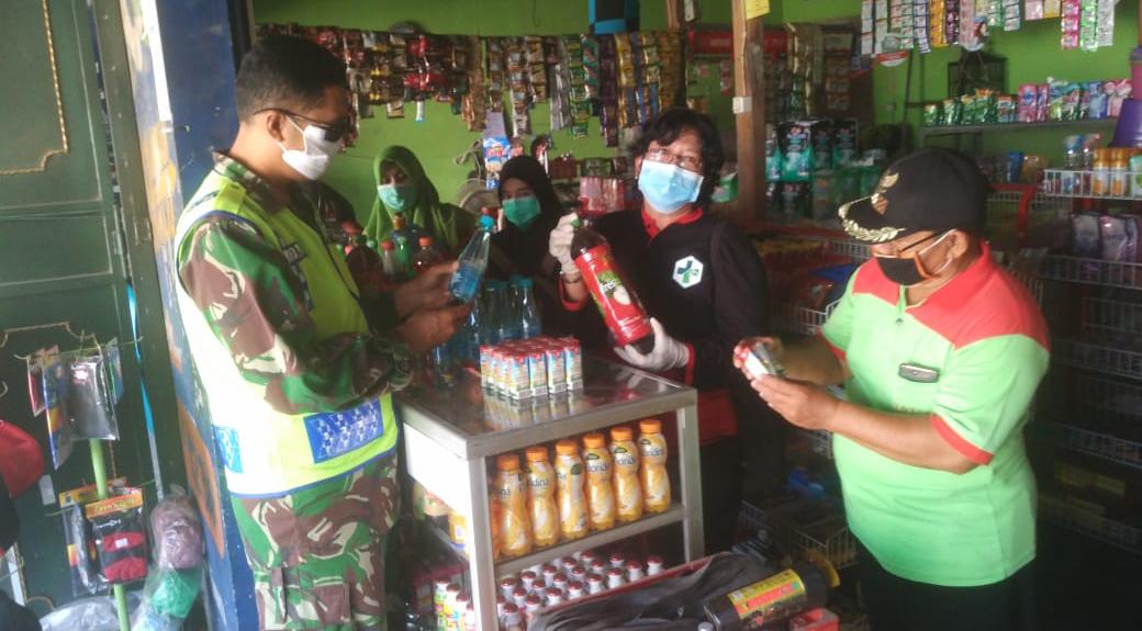 Babinsa Koramil 20 Cawas Kodim 0723/Klaten bersama Polsek, Petugas Kesehatan Puskesmas I Cawas melaksanakan sidak makanan dan minuman tidak layak Konsumsi di wilayah Kecamatan Cawas Kabupaten Klaten, Minggu (17/05/2020)