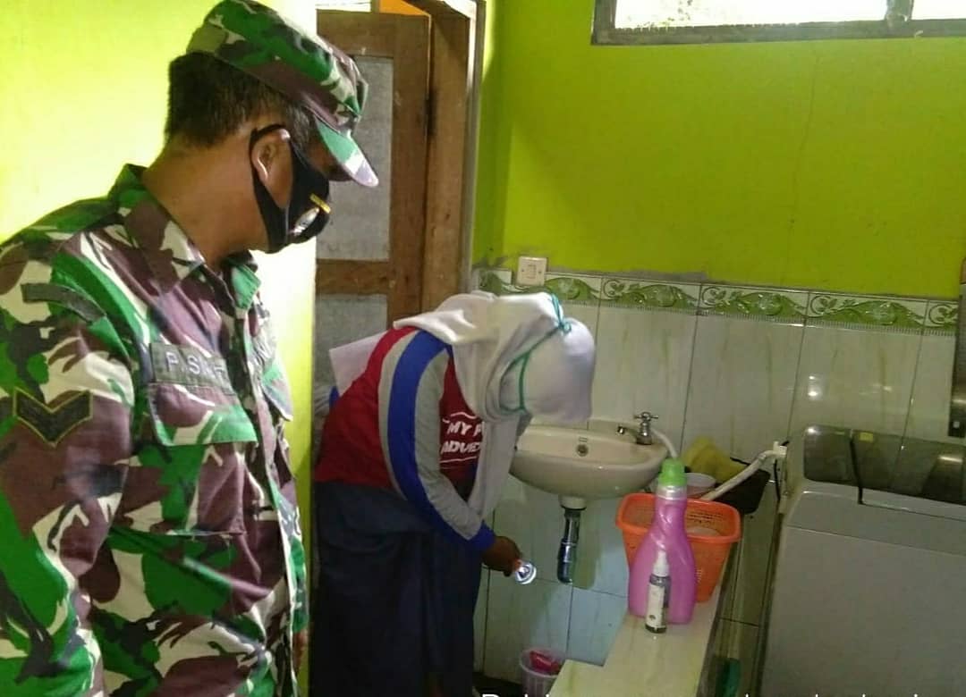 Babinsa Koramil 15/Polanharjo wilayah desa Ponggok mendampingi Tim pemantauan jentik/ Jumantik / pengecekan jentik nyamuk wilayah desa Ponggok, Kecamatan Polanharjo kabupaten Klaten.Senin (11/5/2020)