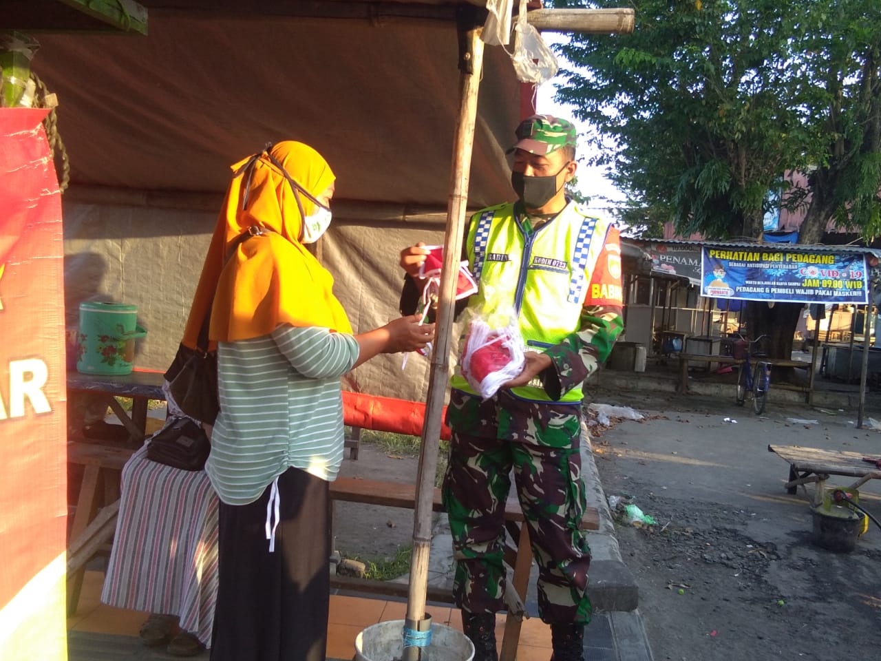 | Bersama Relawan Covid-19,Babinsa Koramil 22 Wonosari Bagikan Masker Gratis |