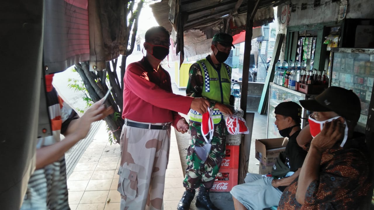Bersama Relawan Covid-19,Babinsa Koramil 22 Wonosari Bagikan Masker Gratis