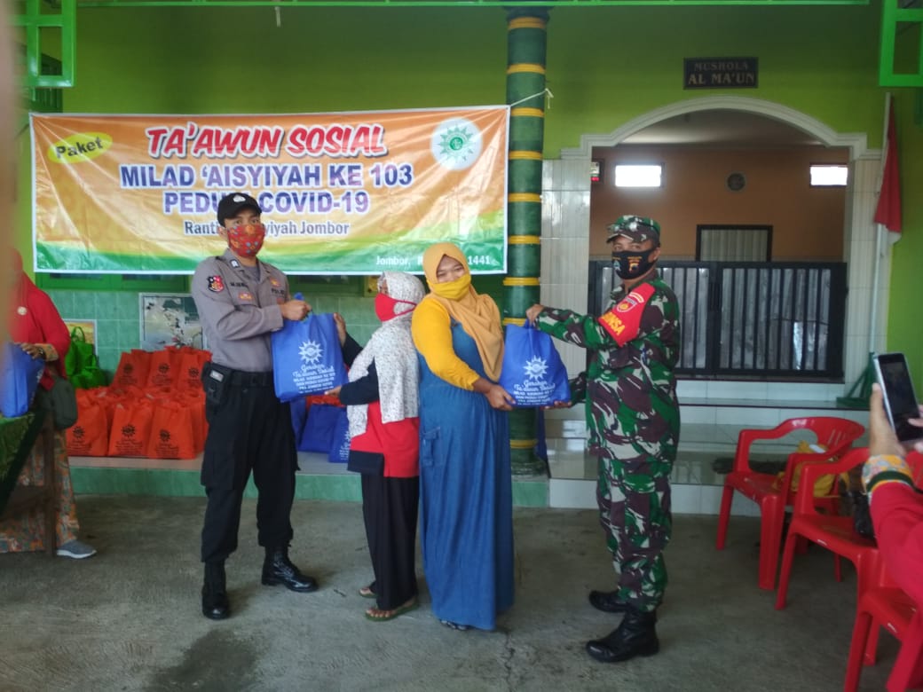 Dampak Pandemi Covid 19 Babinsa Bersama Bhabinkamtibmas serta Paguyuban Aisyiyah Salurkan Bantuan Sembako