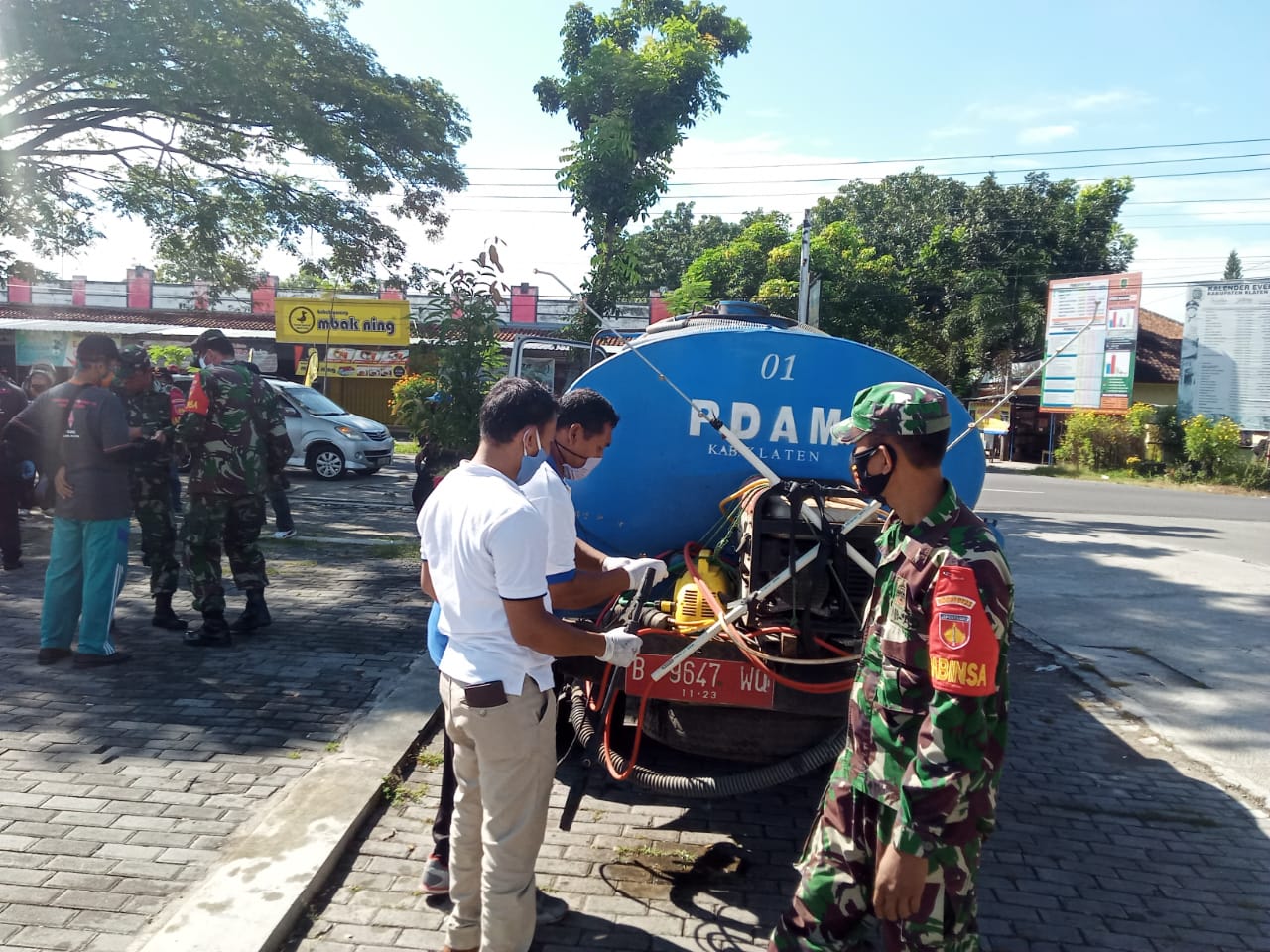 Koramil Cawas Bersama Instansi Terkait Adakan Penyemprotan Disinfektan Di Sepanjang Jalan