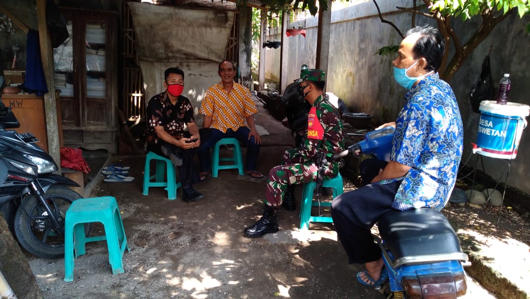 Pada kegiatan tersebut, serda Joko Purnomo Babinsa Desa Jetiswetan melaksanakan patroli Wilayah dan komsos menghimbau kepada warga agar selalu mengunakan masker bila berada di luar rumah dan sering cuci tangan pakai sabun.
