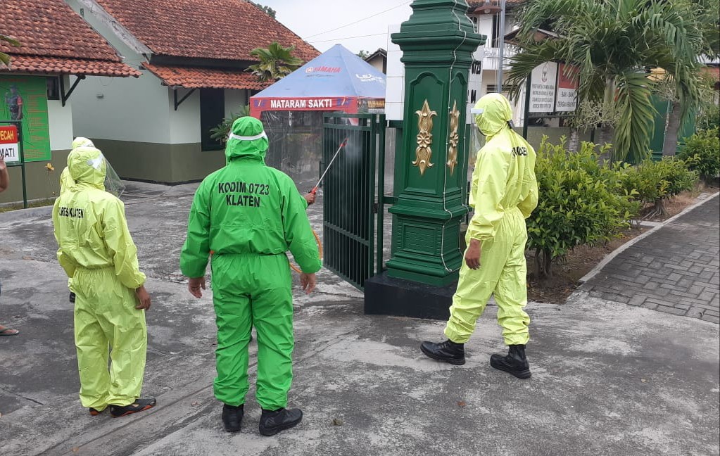 penyemprotan disinfektan di mulai dari kantor Polsek Pedan dan selanjutnya di Koramil 04/Pedan.