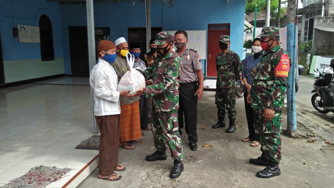Babinsa Koramil12/Manisrenggo dan polsek melaksanakan kegiatan pemberian sembako kepada warga masyarakat Desa Tanjungsari dan pengurus Masjid bertempat di wilayah Kelurahan Desa Tanjungsari RT.03/RW.03, Kecamatan Manisrenggo kabupaten Klaten pada hari Senin (18/05/2020).