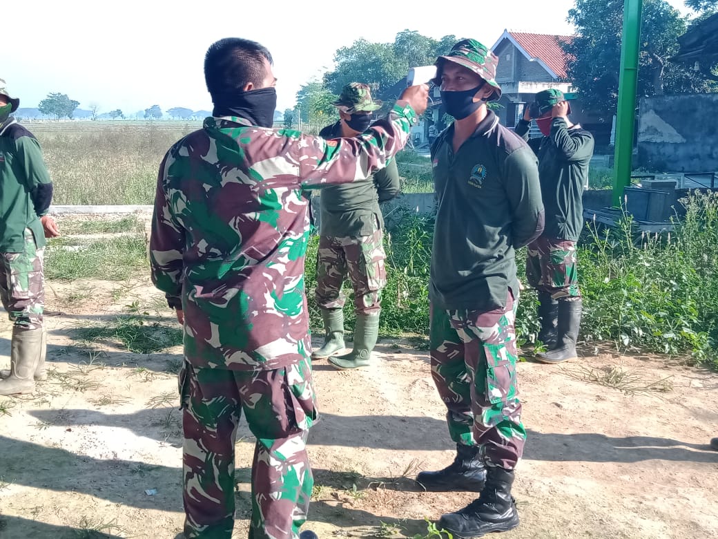 ” Sebelum prajurit melakukan aktivitas bekerja di lokasi, harus melalui protokol kesehatan sehubungan merebaknya wabah virus corona serta untuk mengetahui kondisi kesehatannya, ” terang Kapten Inf Srimin.
