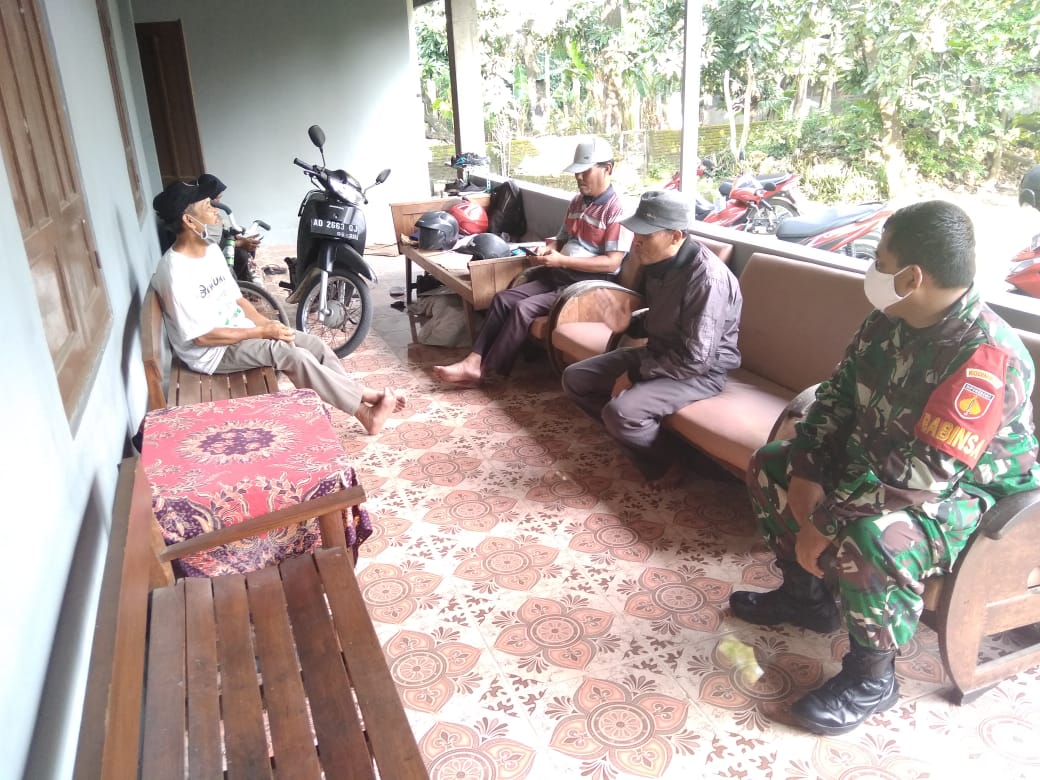 Sertu Aan Wahyu Hidayat babinsa Koramil 02/Jogonalan, Kodim 0723/Klaten melaksanakan Komunikasi sosial ditempat kediaman Suryatno selaku tokoh agama di desa Kraguman,Kec.Jogonalan, Kab.Klaten. Senin (08/06/2020)