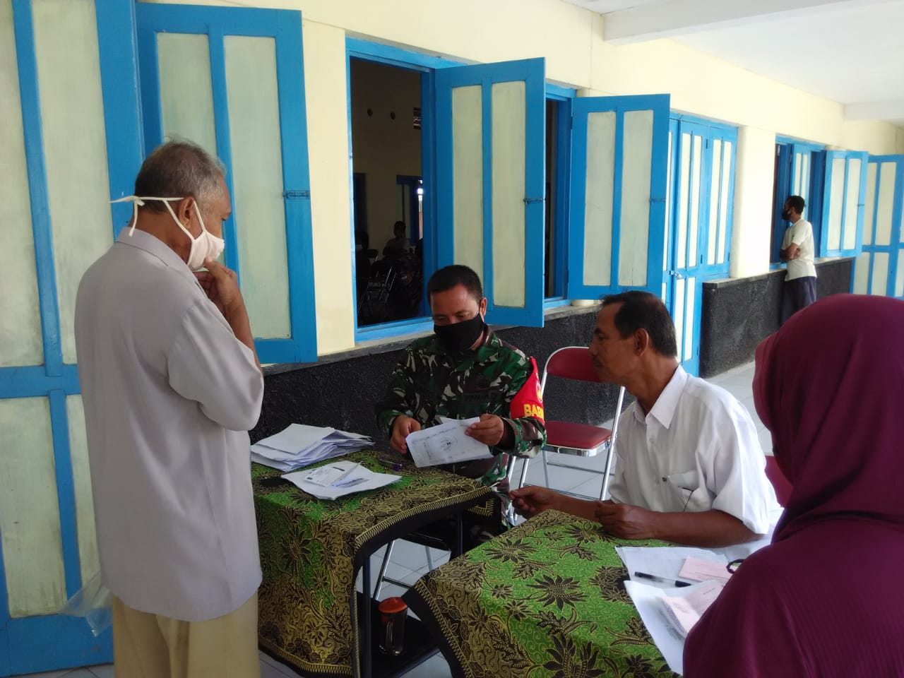 Mewujudkan situasi aman dan nyaman serta kondusif Babinsa Koramil 23/Ceper, Kodim 0723/Klaten, Sertu Gunanto melaksanakan pendampingan dan pengamanan penyaluran Bantuan Langsung Tunai (BLT) DD Tahap III tahun 2020 di gedung serbaguna Desa Jombor Kecamatan Ceper Kabupaten Klaten, Rabu (22/07/2020).