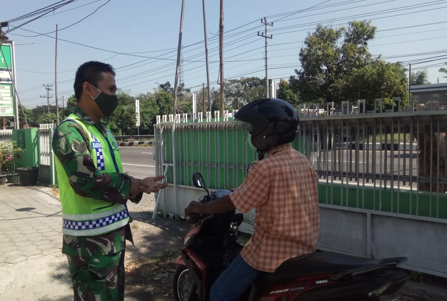 Babinsa Koramil Jogonalan Gencarkan Sosialisasi Protokol Kesehatan Dimanapun Tempat