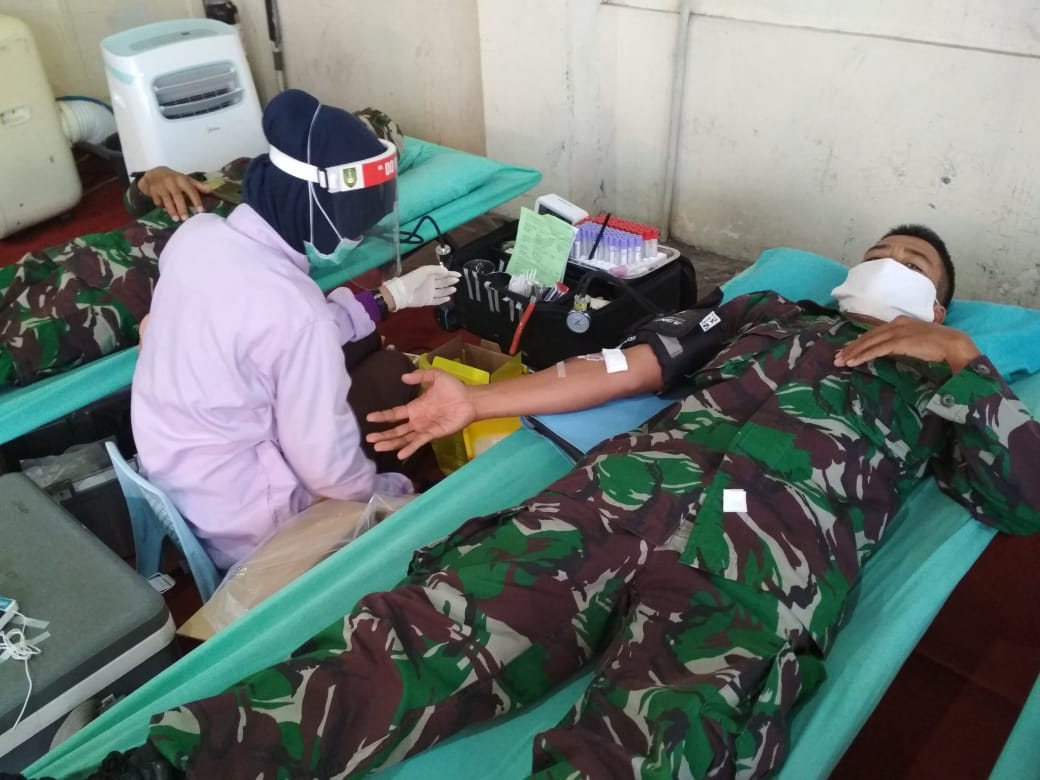 Kopda Agista Babinsa Koramil 22 Wonosari Kodim 0723 Klaten mengikuti donor darah dalam Rangka Pemenuhan Stok Darah di PMI Surakarta.Kamis (23/7/2020)