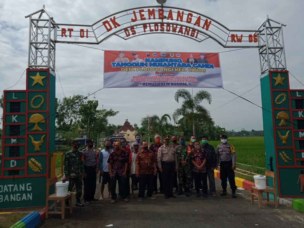 Babinsa Koramil 20 Cawas bersama Polsek Cawas dan Pemdes melaksanakan pemasangan Spanduk Kampung Tangguh Nusantara Candi ” menuju New Normal di Wilayah Desa Kecamatan Cawas Kabupaten Klaten Selasa (7/07/2020)