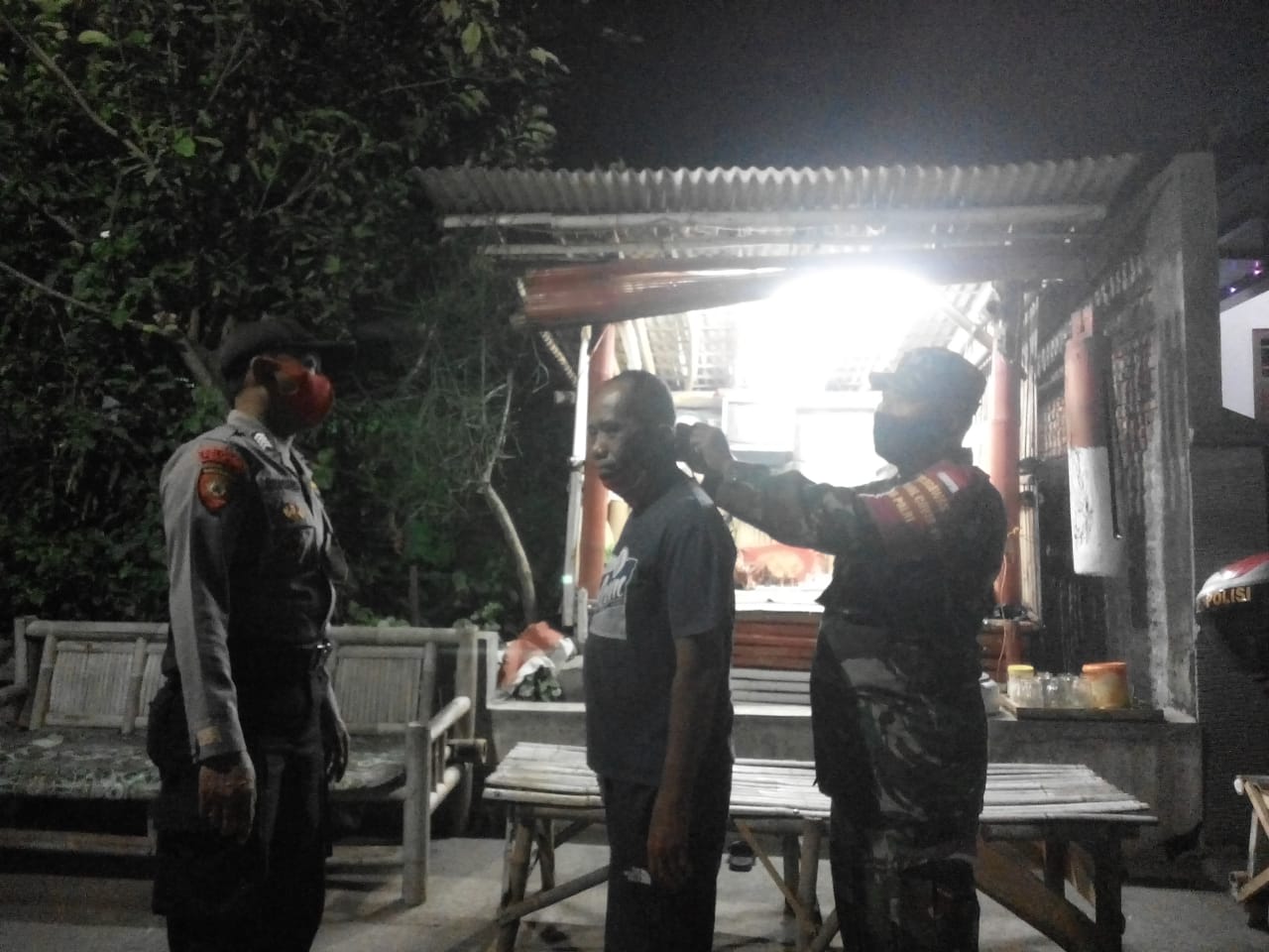 Sertu Joko Sri Murningsih Babinsa Desa Duwet Koramil 22 Wonosari Kodim 0723 Klaten Bersama Babhinkatibmas Polsek Wonosari Melaksanakan Patroli Pos Ronda Malam dan penegakan disiplin Protokoler Kesehatan di Desa Duwet Kecamatan Wonosari kabupaten Klaten.Kamis (23/7/2020)