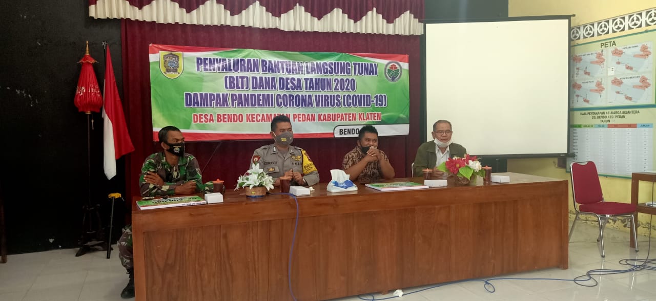 “Pada hari ini Pemerintah Desa Bendo menyalurkan BLT DD kepada Kepala Keluarga sejumlah 84 KK dan penyaluran berjalan dengan aman dan lancar,” Ujar Babinsa
