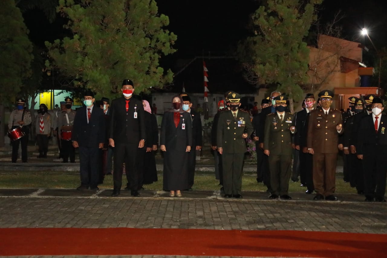 Klaten | Komandan Kodim 0723/Klaten Letkol Inf Joni Eko Prasetyo S.I.P menghadiri acara Apel Kehormatan dan Renungan Suci (AKRS), dalam rangka memperingati HUT Kemerdekaan RI yang ke 75 tahun 2020, Minggu (16/08/2020).